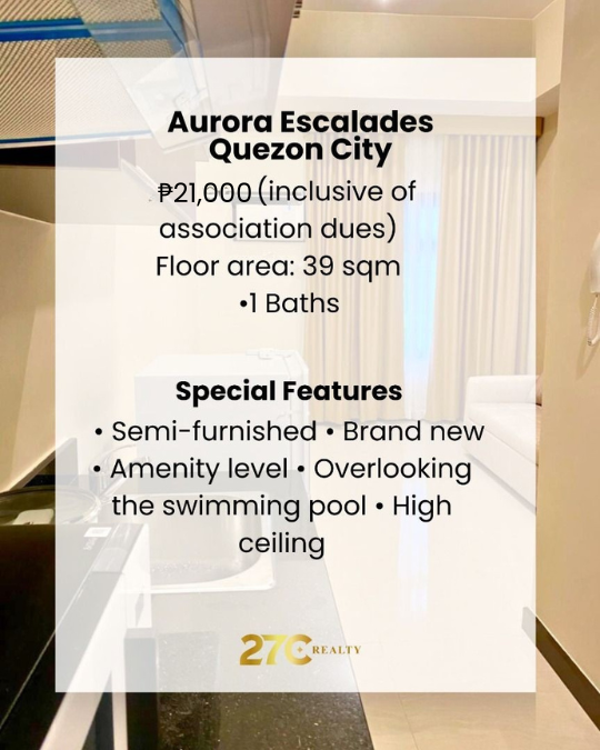 Looking for a modern and convenient living space? This brand new unit at Aurora Escalades in Cubao is the perfect spot for you. Whether you’re looking for easy access to work, shopping, or dining, everything you need is just around the corner!
