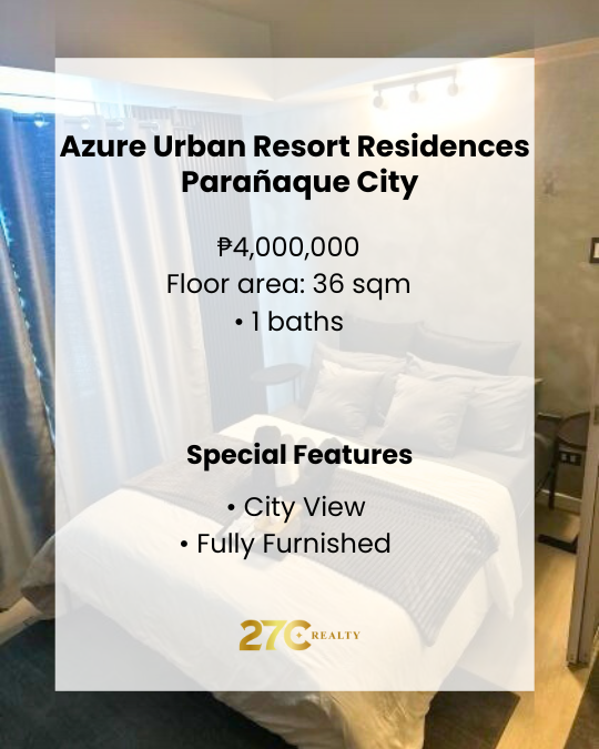 Wake up to a city view and live every day like a vacation in your fully furnished studio at Azure Urban Resort Residences, Maui Tower — perfect for young professionals or smart investors seeking resort-style living.